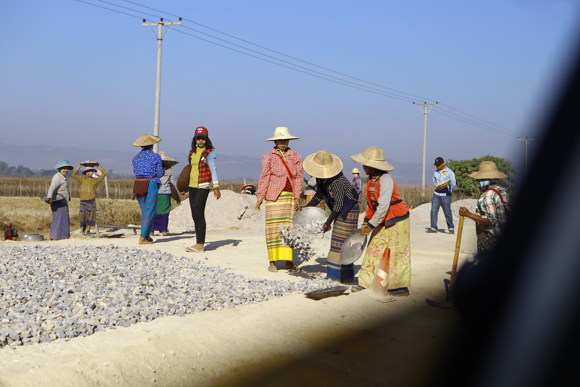 Donne (la maggior parte) e uomini costruiscono la strada
