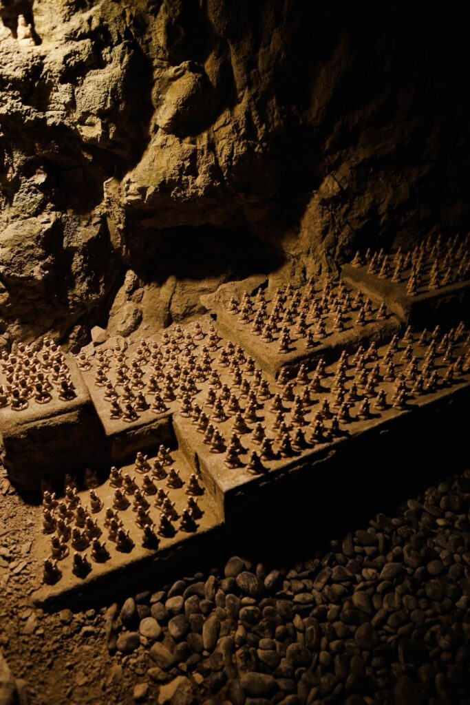 Cunicoli bassi, stretti, camminiamo piegati in due, quasi a perdere l’equilibrio.