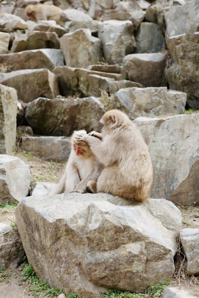 Parlandone tra di noi, siamo tutti d’accordo: la parte più bella non è stata vederle nell’onsen. Ma camminare con loro nel bosco. Vederle svegliarsi, scendere dai loro nidi e iniziare la giornata.