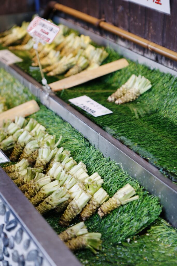 Ci troviamo davanti a una distesa incredibile di acqua e piante verdi, ordinate, rigogliose. Passeggiamo tra i canali, assaggiamo qualche prodotto al wasabi. È un peccato non poterlo portare a casa: quello vero è freschissimo, senza conservanti, e non durerebbe nemmeno il viaggio.